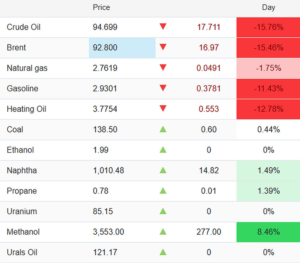 Cijena referentne nafte Brent pala je za oko 16 posto, na približno 92 dolara po barelu, dok je američka WTI nafta zabilježila pad od oko 19 posto. Ipak, cijene su i dalje znatno više nego prije početka sukoba krajem februara.
